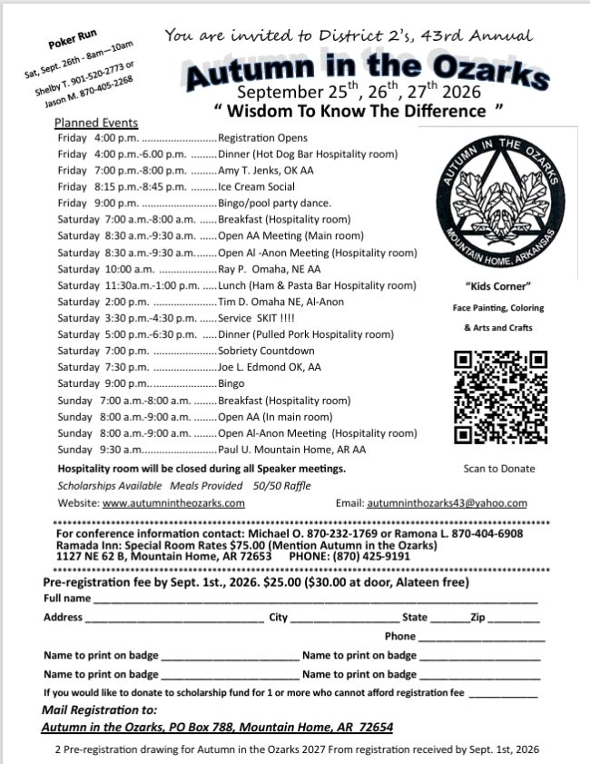 - Sunday 9:30 a.m. ……………………..Paul U. Mountain Home, AR AA